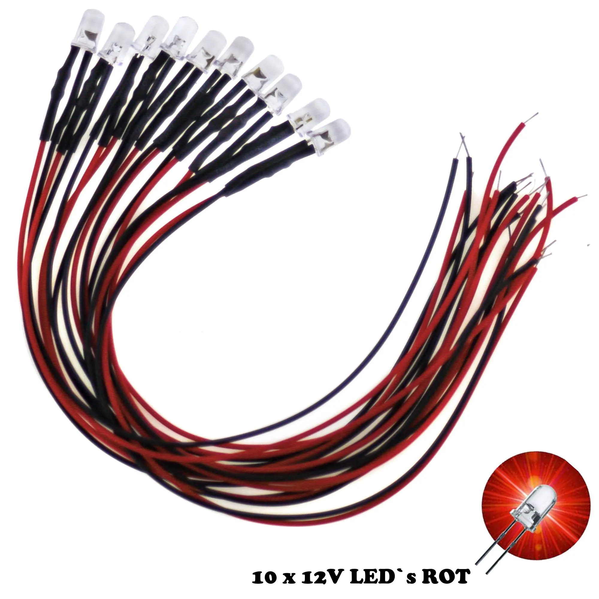 LEDs 5mm 12V Rot 10 Stück